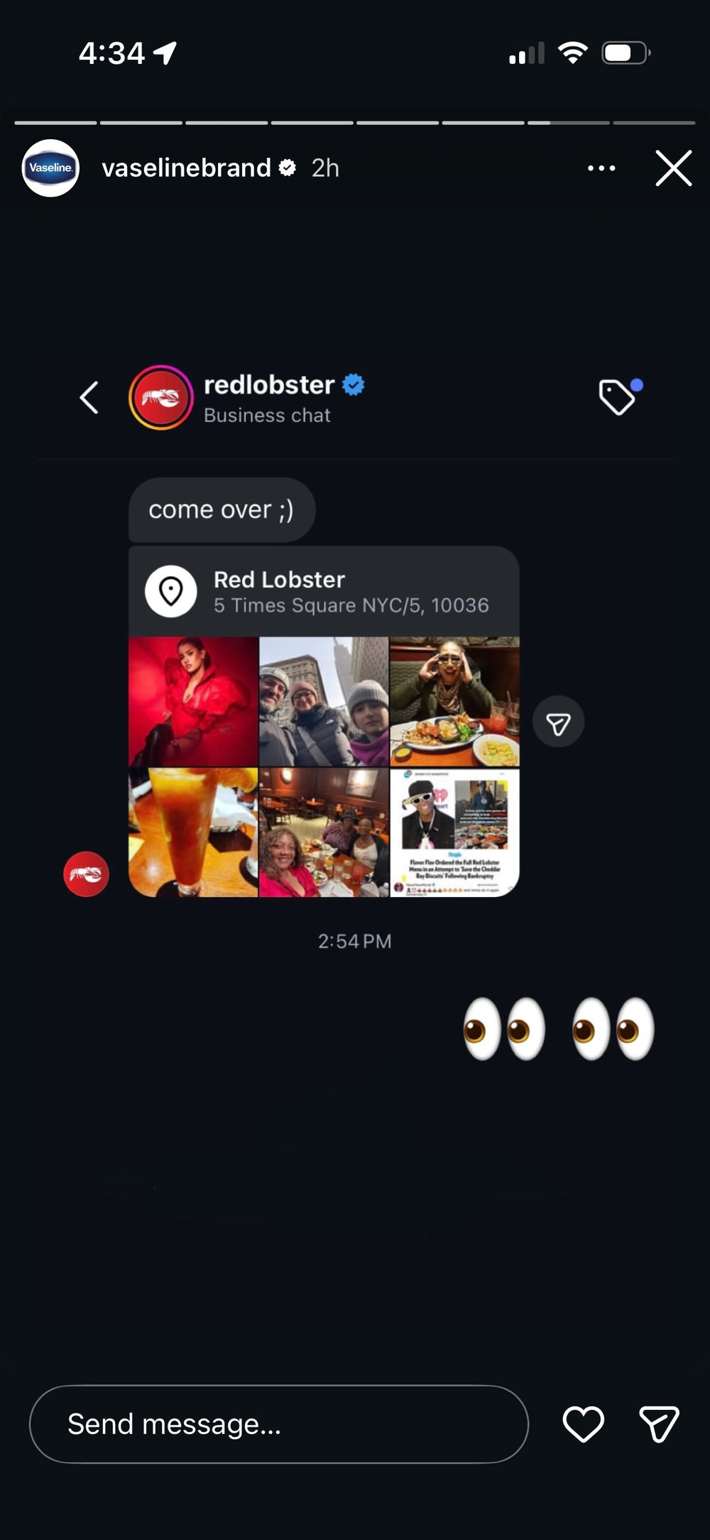 Each reservation included a booth for two at the Times Square Red Lobster, a five course prix fixe menu, cocktails inspired by the the Vaseline Lip Therapy collection, and a final course of Limited Edition Valentine’s Day Vaseline Lip Therapy flavored lips.