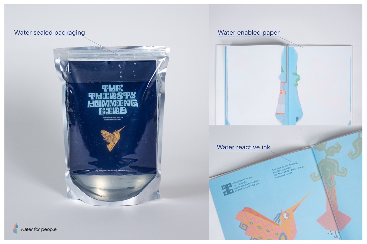 The Dehydrating Book is the water crisis in tangible form. To read it you must add water—without it the story disappears completely, a stark reminder that without water, children can not learn.